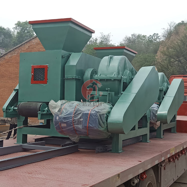 型煤壓球機:利用型煤壓球機前下面的余料回收輸送機返回攪拌機后,再輸入壓球機生產線內進行成型。